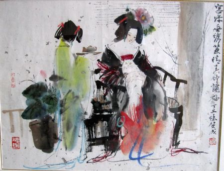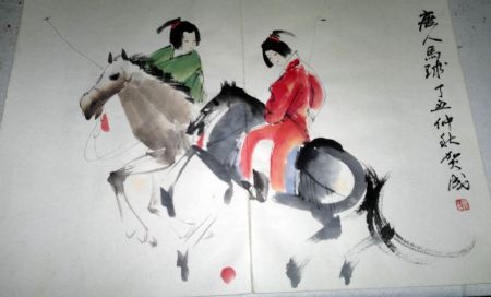 范扬近年来,贺成的作品被众多有识之士所喜爱、临摹,并在国外彩色印刷,“贵妃醉酒图”深圳拍卖2万元,“宫苑仕女图”93年南京拍卖4.8万元。其作品功力深厚,自出新意,笔墨酣畅,浑然大气。其品位高雅的艺术,极具收藏价值。 |