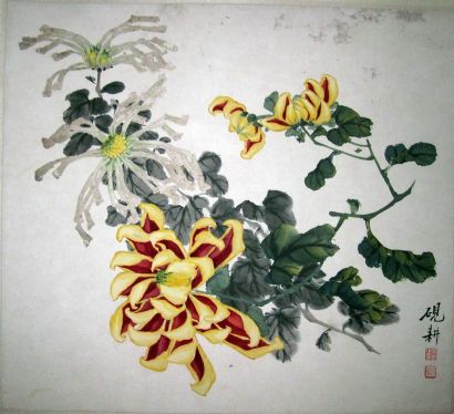 吴砚耕,字砚耕,原名吴芸,女。1910年6月生于扬州,13岁随父亲(清末民初扬州著名画家吴笠仙先生)习画,继承画菊的传统家法,同时兼工花鸟。艺术造诣独特,风格自成一体,以画菊见长。曾任江苏省美术家协会理事、原扬州市政协常委。现为中国美术家协会会员,江苏省花鸟画研究会研究员,江苏省美协理事,扬州国画院高级美术师。继承吴笠仙画菊的传统家法,同时兼工花鸟。作品参加全国**届花鸟画展。郭沫若题诗:“菊丛饶有阶级性,敢与严霜作斗争,花不飘零根不死,东篱岁岁茁新生。”作品曾多次展出于泥泊尔、香港、日本、东南亚等地,香港文汇报曾以《秋菊有佳色》为题作了介绍。作品《菊花》为中南海收藏,并刊登于中南海藏画集。出版有《吴砚耕画集》,作品多次在国内出版,收藏、获奖。