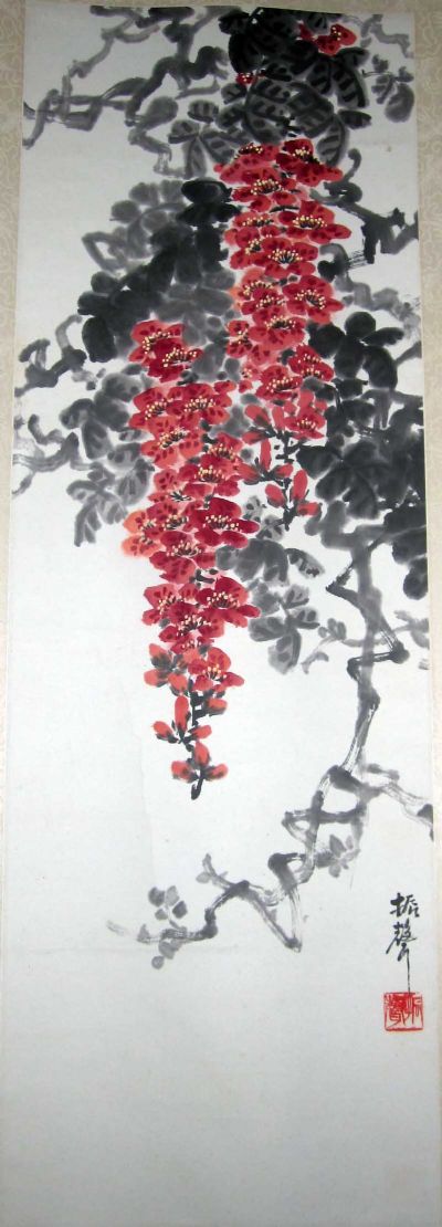 支老工写意花鸟。其画在继承吴昌硕画风的基础上,创出了自己的风格。其特色在于,画枝干用中锋行笔,厚重苍劲。画花、叶,中、偏锋兼施,使花、叶掩映多姿。设色上多用浓墨画叶,重彩画花,艳而不俗,厚而不僵。支老擅长格律诗,几乎每画必题,加上书、篆功力深厚,自成一格,故而诗书画印浑然一体,相得益彰。多次在上海、南京、扬州等地展出,为各地文博单位和书画院收藏。晚年自号梅癖。其墨梅为中外人士所宝爱。一九八七年四月十七日,支老因病逝世。 |